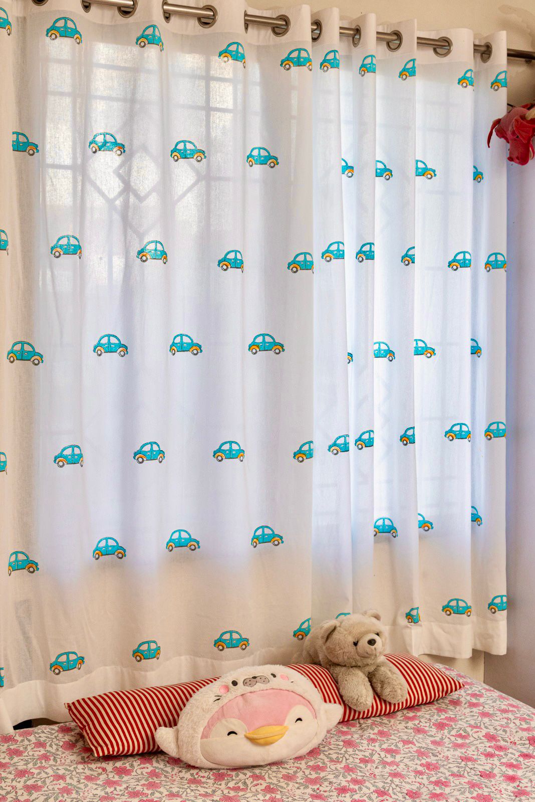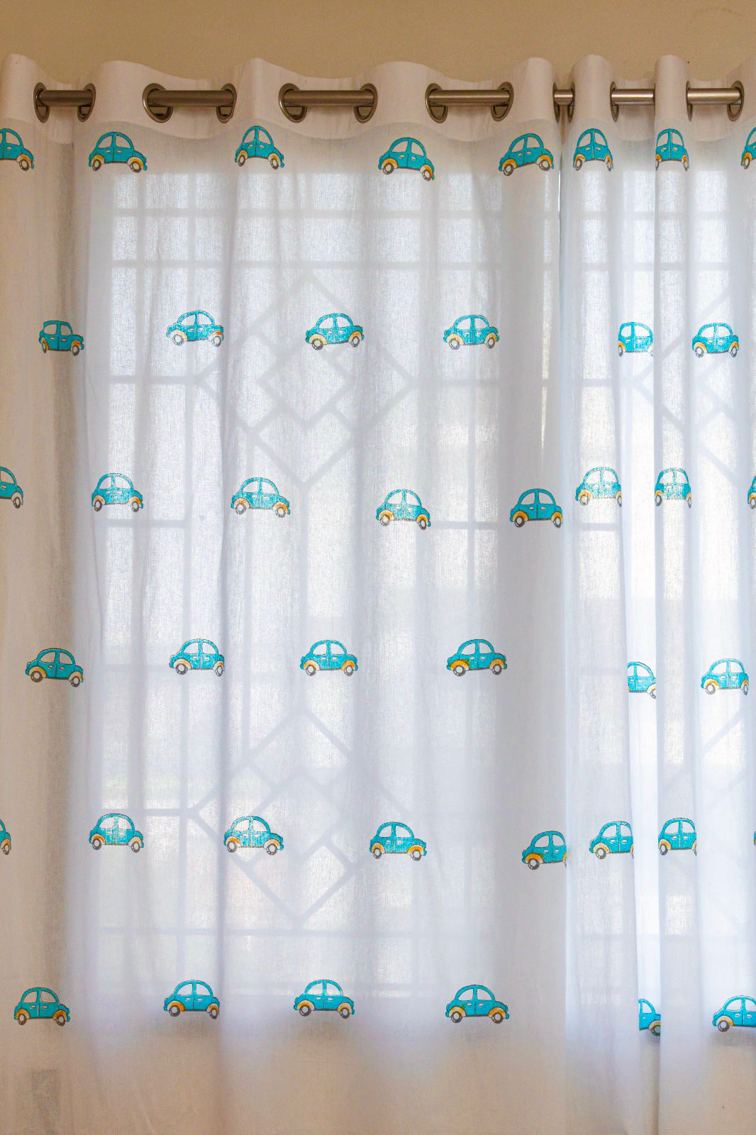 Vroom into fun with our hand block printed Blue Car Curtains – perfect for your little racer’s room