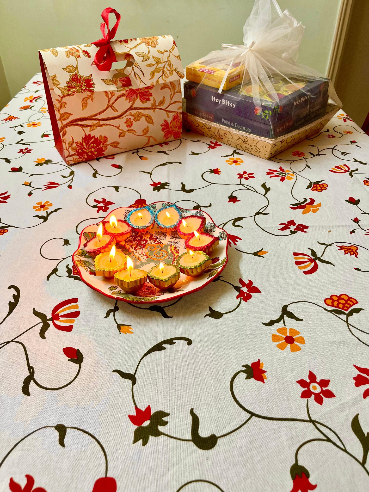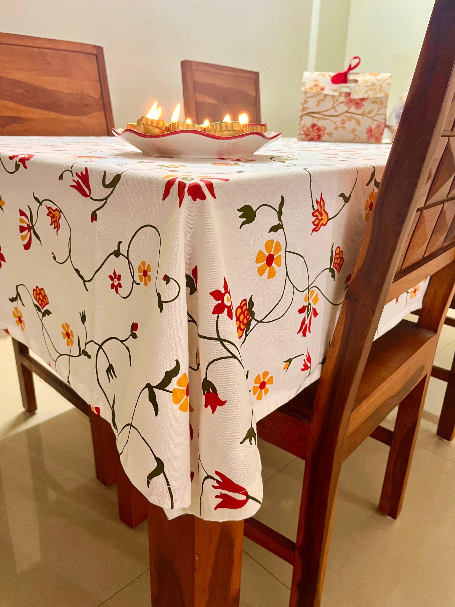 Hand Block printed_ Muted Red, Mustard & Olive Gul Table Cloth