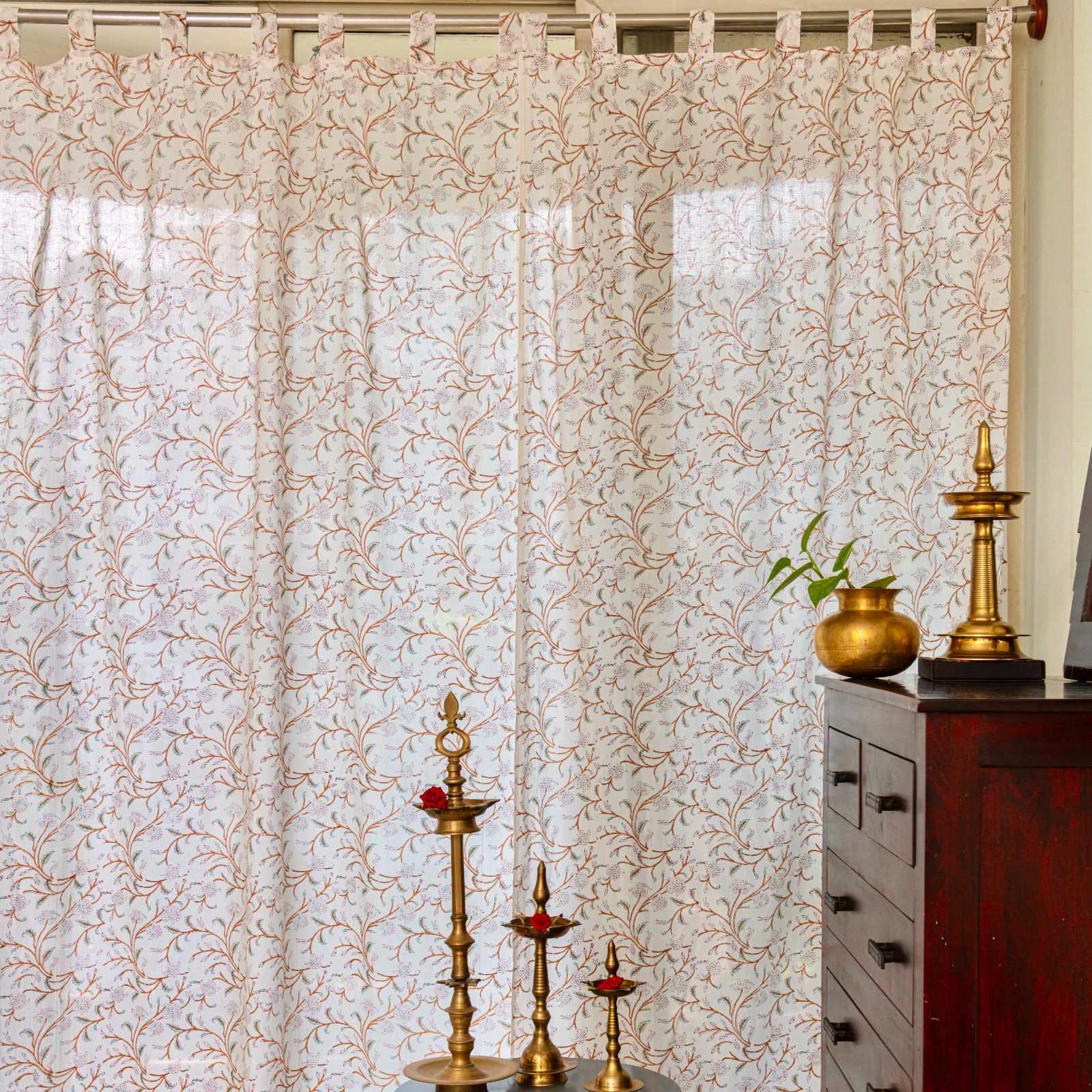 Hand Block printed-Tender Twig Sheer Curtains- SET of 2 Curtains