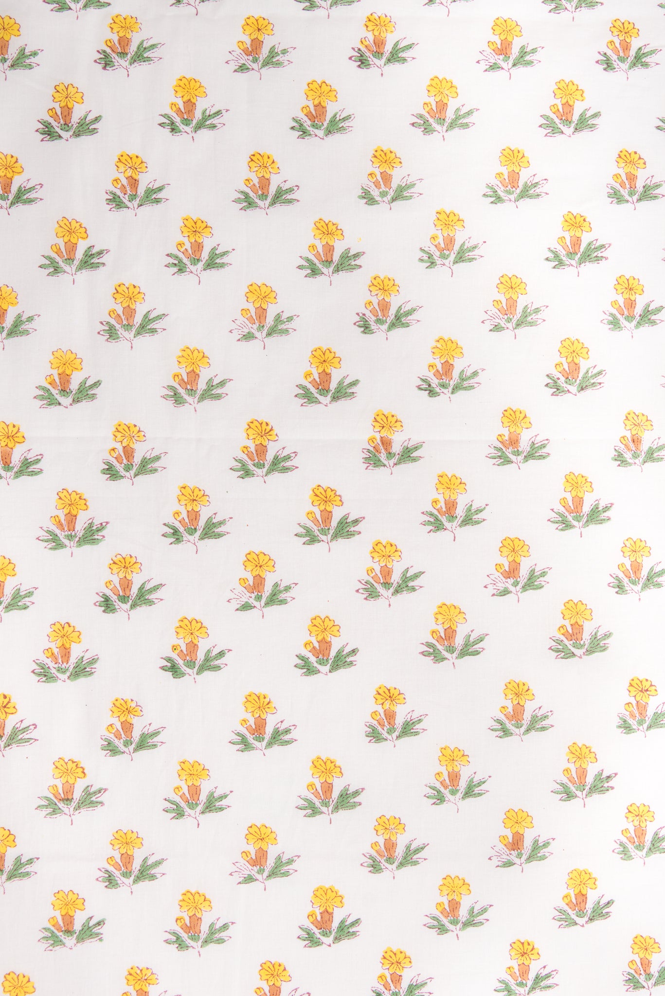 Hand Block Printed Yellow Bloom Sheer Curtains